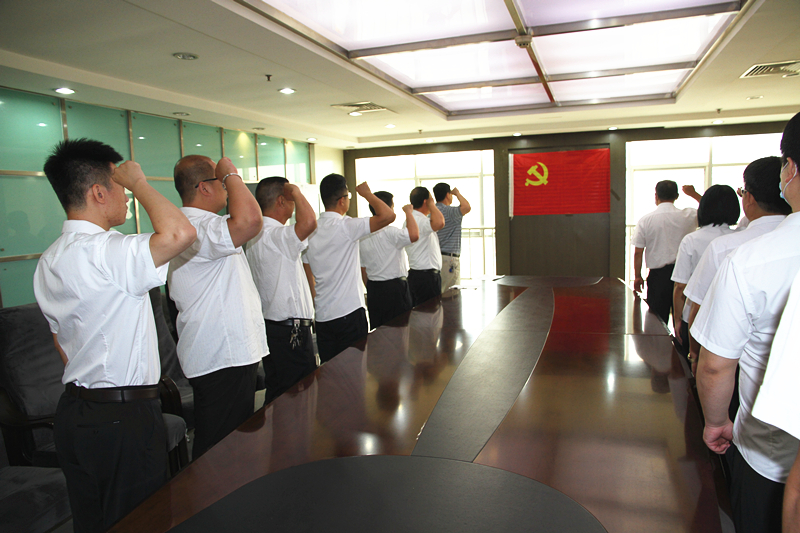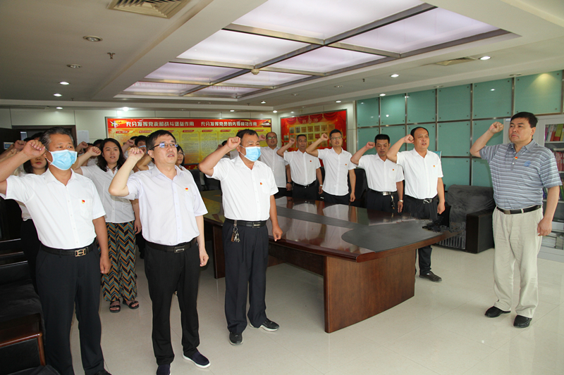 首先,黨總支部書記張雙義同志帶領(lǐng)與會(huì)黨員代表,面對(duì)黨旗,舉起右手,緊握拳頭,共同重溫入黨誓詞。