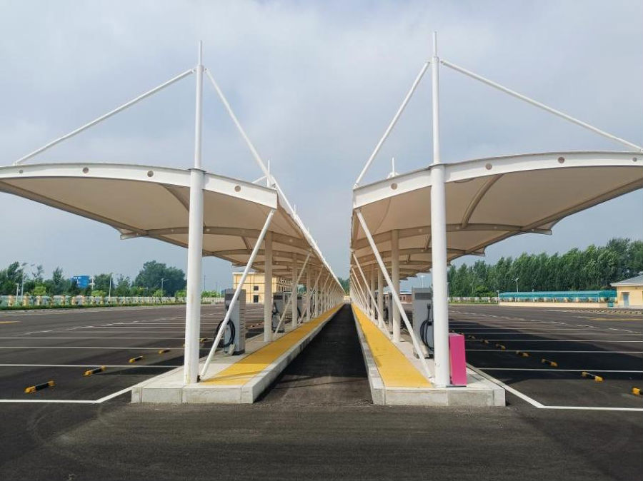 場(chǎng)站內(nèi)可用充電樁48座,配電室1間,配備維修車間。