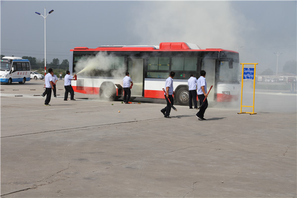 此次演練活動(dòng)由衡水市交通運(yùn)輸局主辦,衡水市公共交通總公司承辦,市公安局、市消防支隊(duì)協(xié)辦。事前各方參戰(zhàn)人員經(jīng)過精心策劃、周密籌備、結(jié)合公交實(shí)際情況,共設(shè)置了四個(gè)演練科目,分別為:一、在公交車上發(fā)現(xiàn)疑似爆炸物的應(yīng)急處理措施。二、在公交停車場(chǎng)內(nèi)發(fā)生火災(zāi)后的消防演練。三、在公交車上發(fā)生劫持人質(zhì)事件后的應(yīng)急處理措施。四、公交車在正常運(yùn)營(yíng)過程中突然起火后的消防演練。