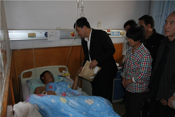 10月10日,一場(chǎng)溫暖的獻(xiàn)愛心活動(dòng)正在總公司、三個(gè)分公司辦公室里悄悄進(jìn)行。一分公司一位老職工、好車長(zhǎng)、好同事正遭受著癌癥的折磨,用他微薄的力量與死亡抗?fàn)帯?999年2月康存柱同志到我公司工作,2008年6月被我公司聘用,為一分公司車長(zhǎng)。妻子長(zhǎng)期在家務(wù)農(nóng),大兒子剛上班,二兒子待業(yè)。2013年冬天,康存柱同志因患重病住院治療。近一年來(lái),通過(guò)醫(yī)療保險(xiǎn)手續(xù)報(bào)銷了部分治療費(fèi)用。但是,不能通過(guò)醫(yī)保報(bào)銷的藥品、營(yíng)養(yǎng)品等費(fèi)用數(shù)額也非常大。本就經(jīng)濟(jì)拮據(jù)的家庭瞬間被烏云籠罩,束手無(wú)策,整個(gè)家庭處在悲觀之中。長(zhǎng)期以來(lái),康存柱同志工作兢兢業(yè)業(yè),任勞任怨,為公交事業(yè)做出了積極的貢獻(xiàn)?偣镜弥⒑螅b于于康存柱同志的實(shí)際困難,為充分體現(xiàn)組織溫暖,增強(qiáng)公司的凝聚力?偣竟(huì)向全體職工發(fā)起愛心募捐倡議,倡議全體員工發(fā)揚(yáng)“一方有難,八方支援”的民族傳統(tǒng)精神和“相互幫助、患難扶持”的時(shí)代新風(fēng)進(jìn)行捐款,為工友及時(shí)伸出援助之手。倡議發(fā)出后,充滿情與愛的衡水公交人紛紛解囊相助,大家踴躍捐款,截止到10月12日,共收到300多名員工的近2萬(wàn)元捐款。10月15日,總經(jīng)理張雙義同志帶領(lǐng)班子成員、部分職工代表來(lái)到醫(yī)院看望了康存柱同志及其家人,將愛心款交到了病人手中。張雙義同志與病人及家屬親切交談,詳細(xì)了解了病人的病情,鼓勵(lì)他們樹立信心,安心養(yǎng)病。同時(shí),向病人及其家屬表示:在住院期間,如果遇到什么困難及時(shí)通知總公司,總公司永遠(yuǎn)是公交員工的靠山。另外,還特意安排相關(guān)工作人員協(xié)助病人家屬辦理相關(guān)的醫(yī)療保險(xiǎn)報(bào)銷手續(xù),想盡一切辦法幫助病人家屬減少負(fù)擔(dān)。廣大公交人的捐款及時(shí)解決了工友的燃眉之急,使病人及家屬體會(huì)到了組織的溫暖。衡水公交人用赤城的愛心幫助工友化解危機(jī)、用互助的溫暖激勵(lì)工友戰(zhàn)勝困難的義舉,充分展現(xiàn)了衡水公交人高尚情操,進(jìn)一步詮釋了總公司“人文公交”的企業(yè)文化內(nèi)涵。