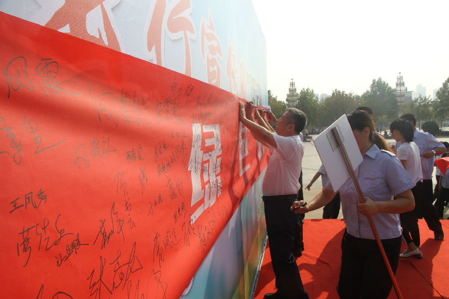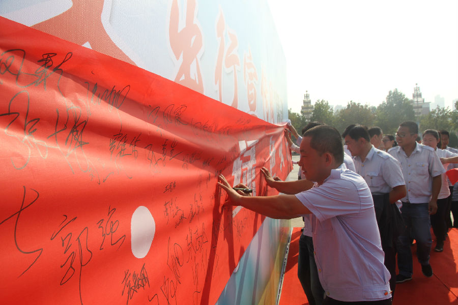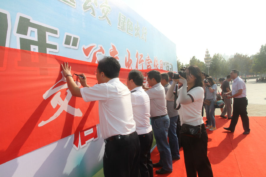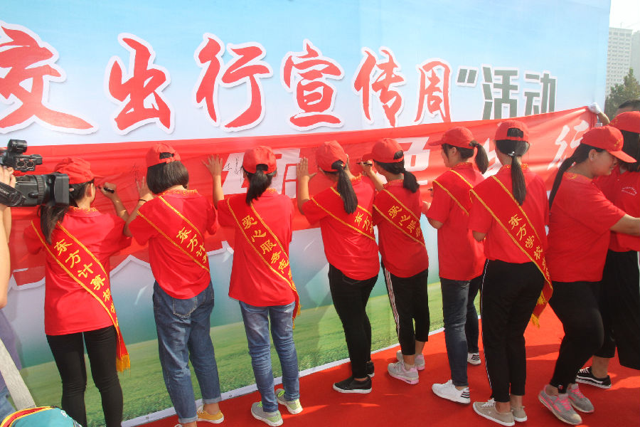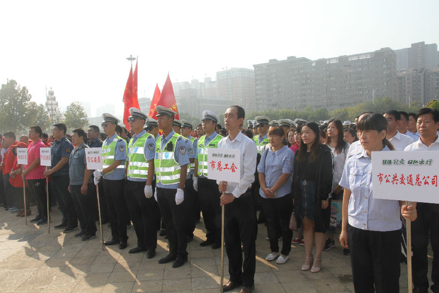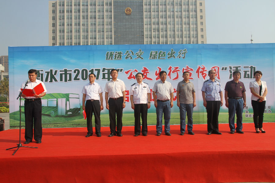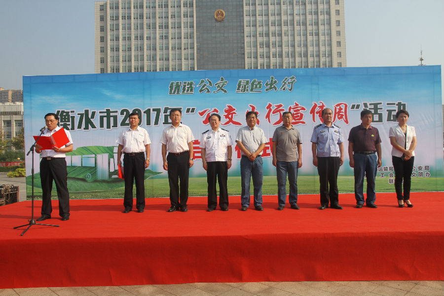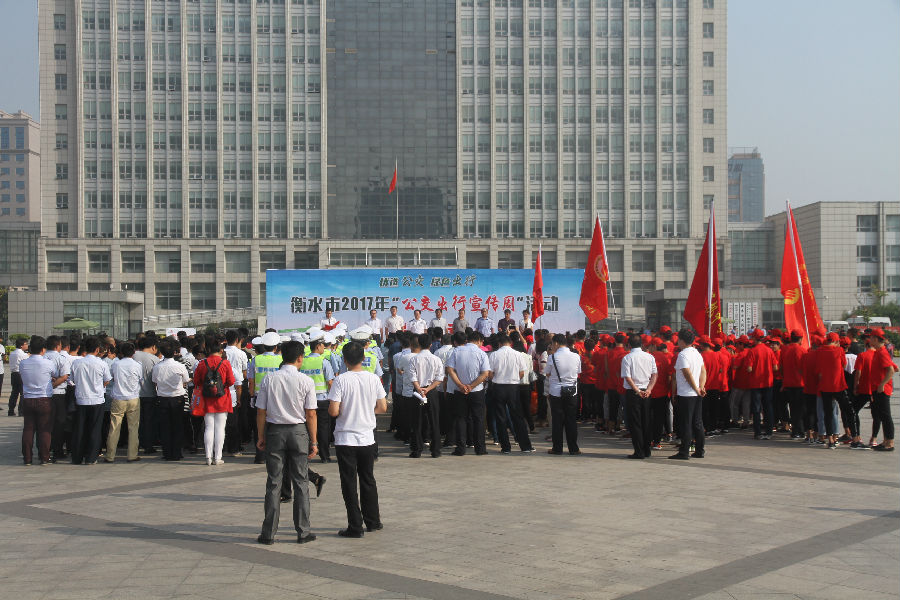 18日上午,市交通運(yùn)輸局、市公安局、市總工會、市文明辦,在市政府廣場聯(lián)合舉行了2017年“公交出行宣傳周”活動啟動儀式。市交通運(yùn)輸局方隊(duì)、市公安局交警支隊(duì)方隊(duì)、市總工會方隊(duì)、市文明辦組織的方隊(duì)、市公交總公司方隊(duì)、市愛心志愿者協(xié)會方隊(duì)、中國聯(lián)通衡水分公司方隊(duì)列隊(duì)參加。啟動儀式后,“優(yōu)選公交、綠色出行”萬人簽名活動首批人員參加了簽名活動。