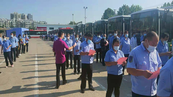 車長文明服務倡議活動。8月27日上午,利用公交車長集中做核酸檢測的機會,總公司相關科室在現(xiàn)場做了我市創(chuàng)建全國文明城市宣傳活動,并組織全體車長共同簽訂《安全行車 文明服務 我為城市文明形象代言倡議書》,得到車長同志們的熱烈響應。