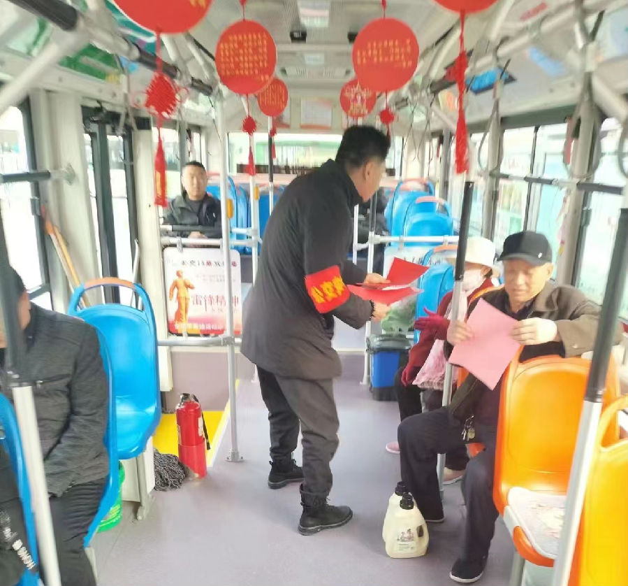 積極宣傳“文明交通綠色出行”行動(dòng),以發(fā)放宣傳單的形式,倡導(dǎo)文明健康綠色環(huán)保生活方式,引導(dǎo)乘客文明乘車,乘車過程中主動(dòng)為老、弱、病、殘、孕及懷抱嬰兒者讓座。